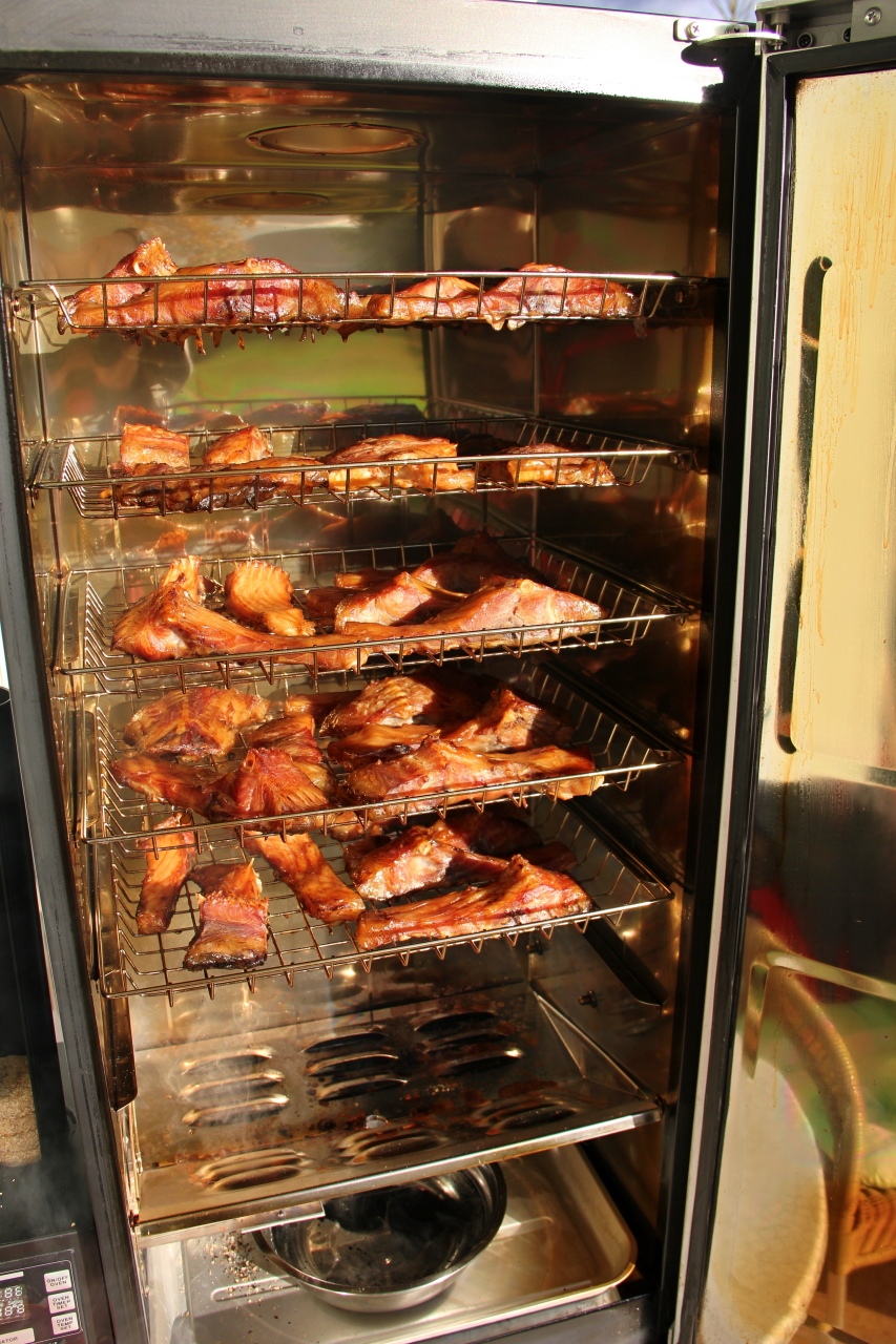 - jak se nám zdají ryby oschlé, hned snižujeme teplotu - záleží na typu udírny a velikosti porcí ryb - u malé elektrické udírny Bradley smoker stoupá teplota po vložení ryb ke 100°C pozvolně cca 1 hodinu, u klasické udírny je to rychlejší